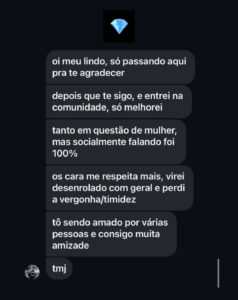 Mas garanto que você terá acesso aos exatos métodos e abordagens que eu e muitos homens usaram para destravar, ganhar confiança e começar conversas reais com mulheres — de forma simples, natural e eficiente.